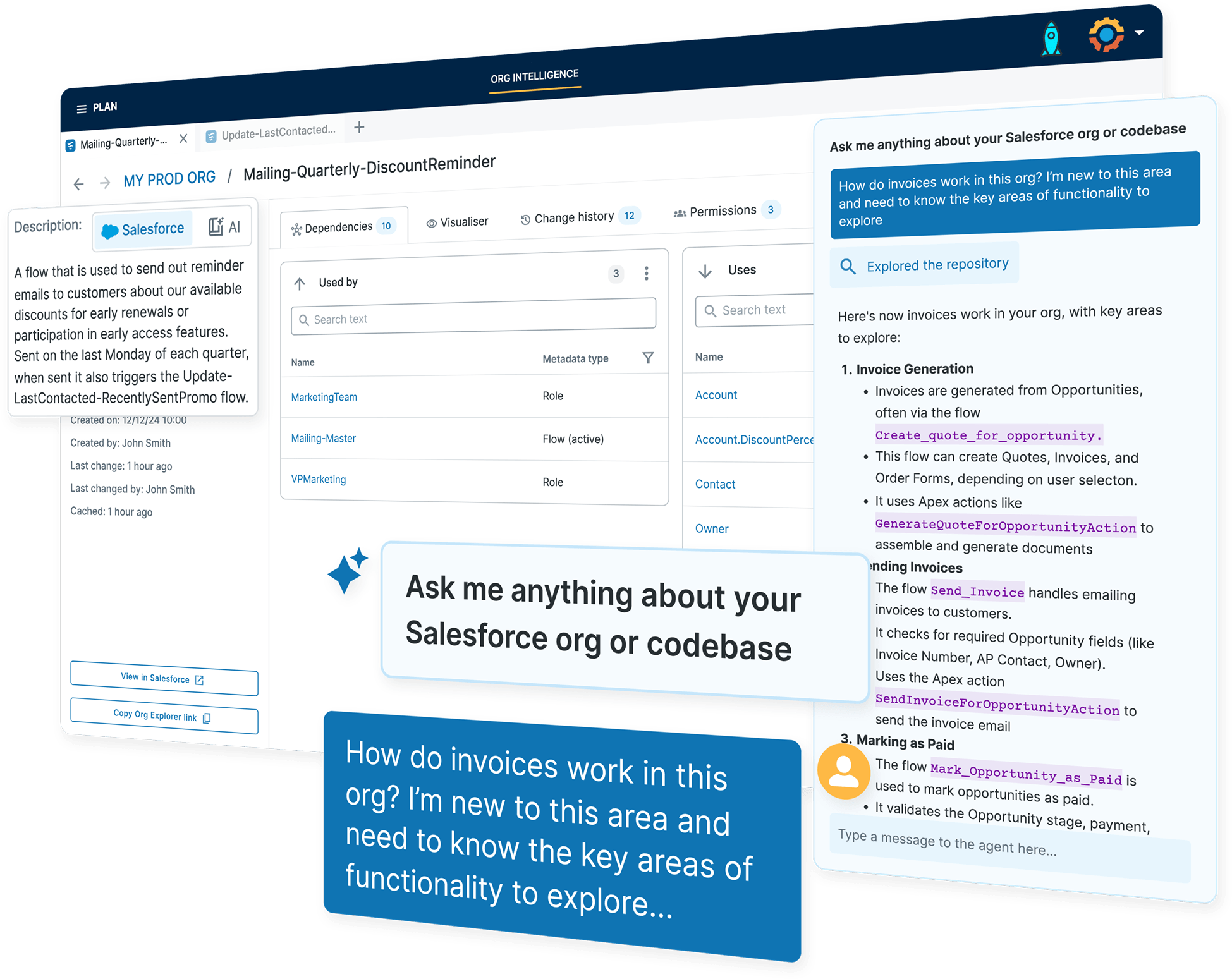 Get instant insight into your org’s metadata, and ask the Gearset agent for context-aware guidance on what you build.