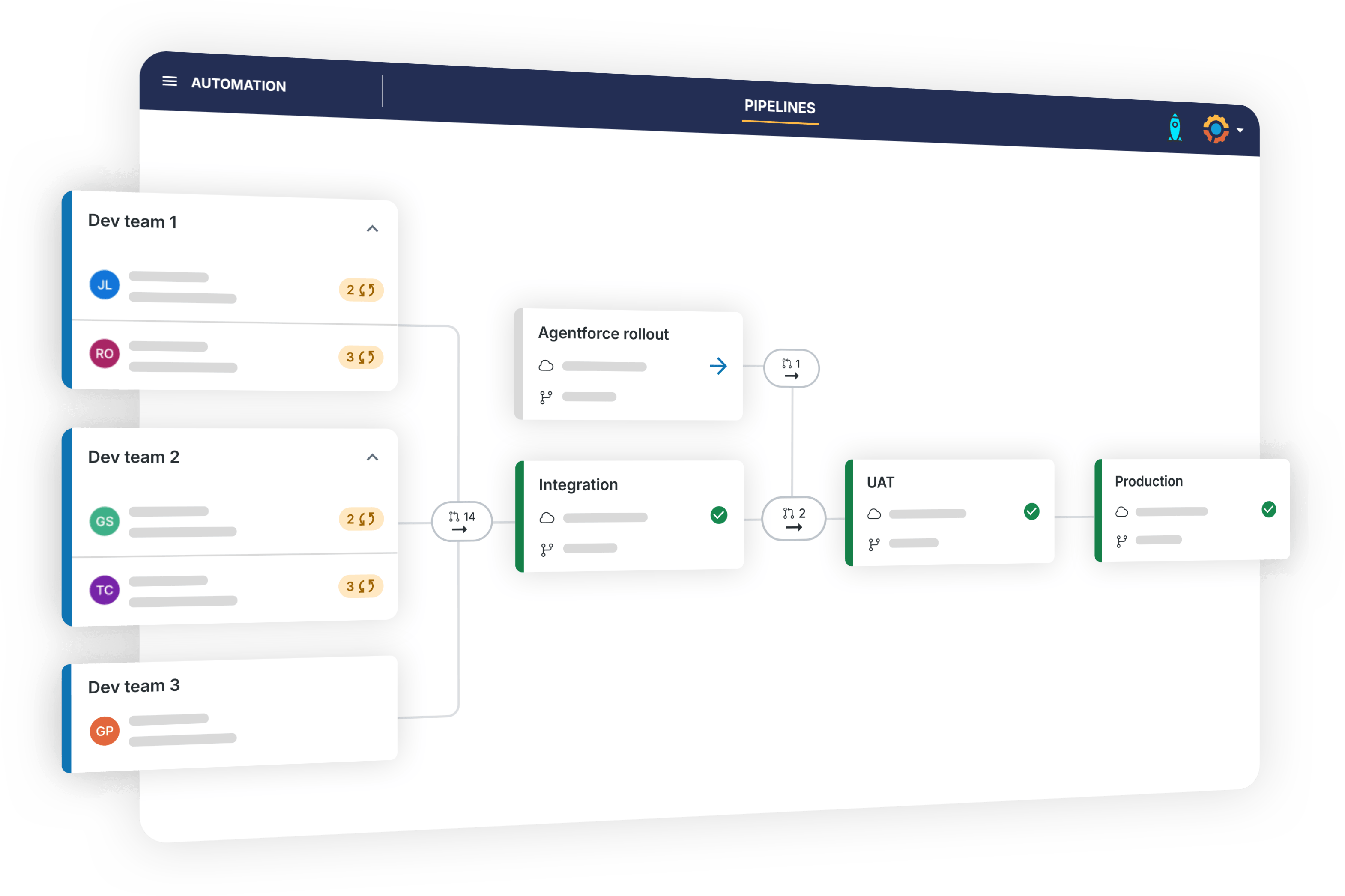Pipelines allows different teammates to work on the same Salesforce metadata without overwriting each other’s work. It allows each team to operate independently while keeping orgs in sync.