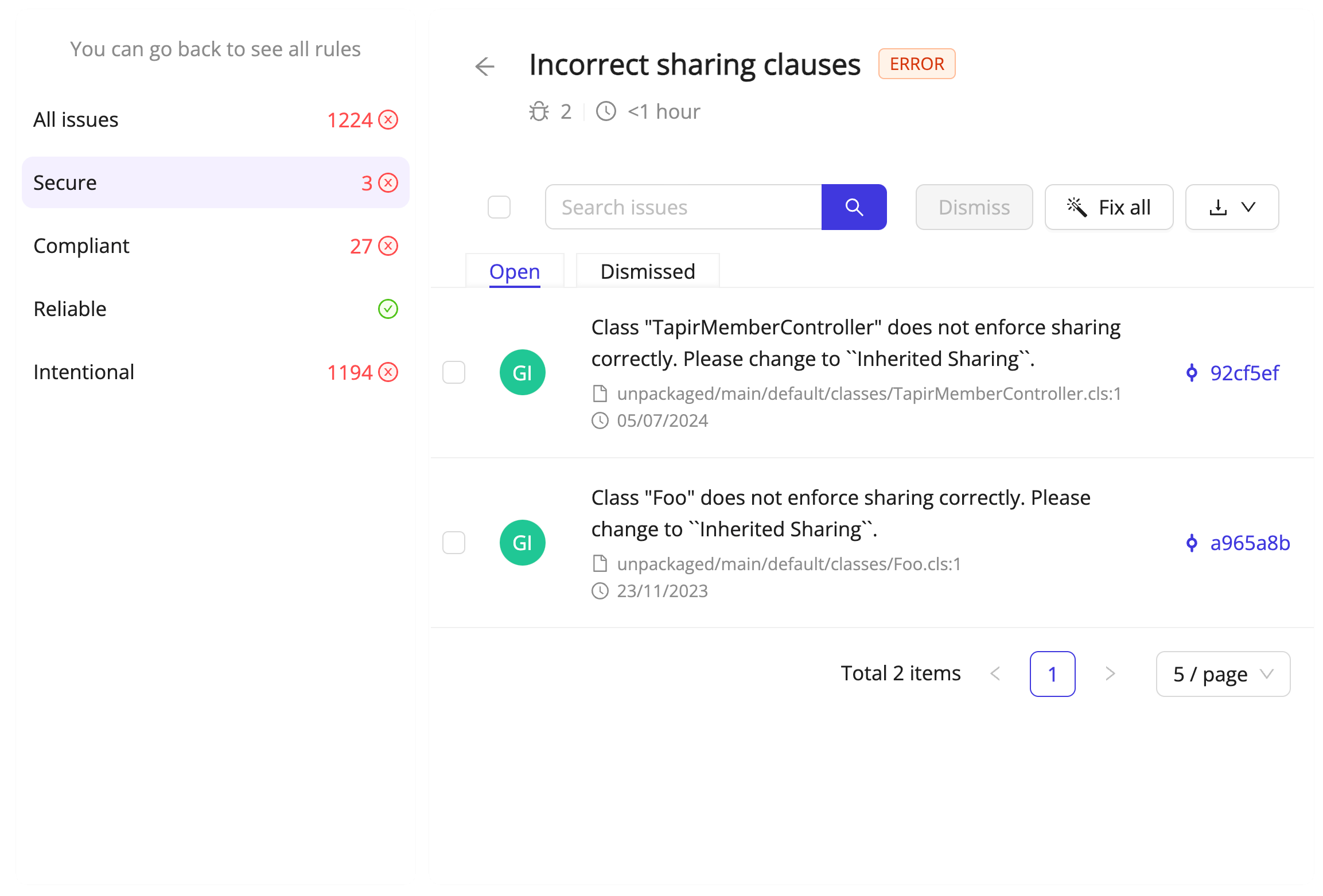Other code analyzers such as PMD offer configurable rule sets for scanning Apex classes. But teams can be overwhelmed with the number of violations flagged in their legacy code, and the only real remedy is to switch off those rules. In contrast, Code Reviews helps you bring your codebase in line with more best practices over time. You can choose how aggressively you want to enforce conformity with rules for new and existing code. You can flag false positives to further reduce the noise. And autofixes help you to remediate issues quickly. Unlike other solutions, Code Reviews also analyzes configuration like Flows as well as Apex code.