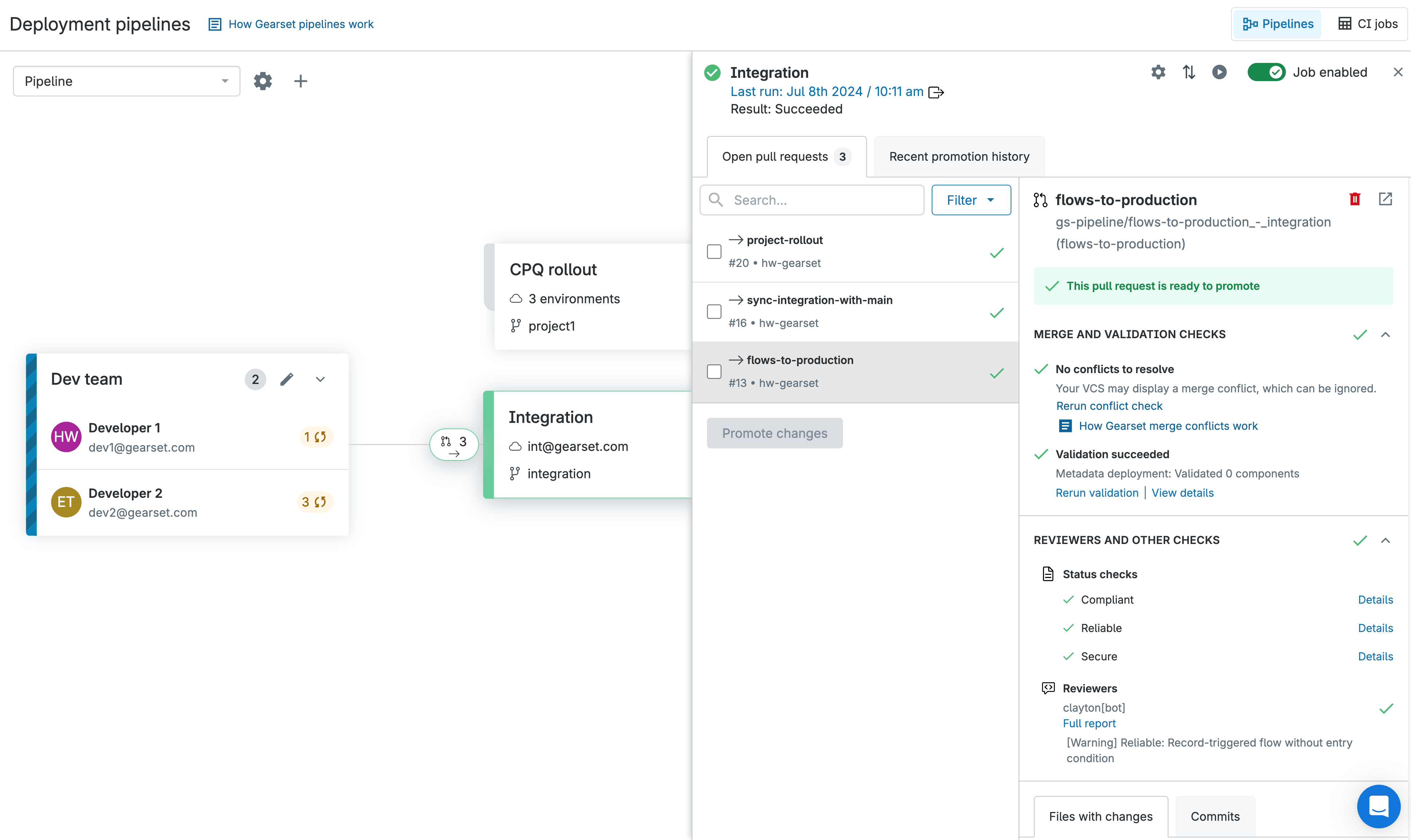 Code Reviews is the new name for Clayton, now fully integrated into the Gearset product suite. Gearset acquired Clayton in September 2024 and has since developed the integration to combine the platforms. The result is a seamless experience where Clayton’s intelligent code analysis and review capabilities are built directly into Gearset, making it easy to maintain and improve code quality in one place.