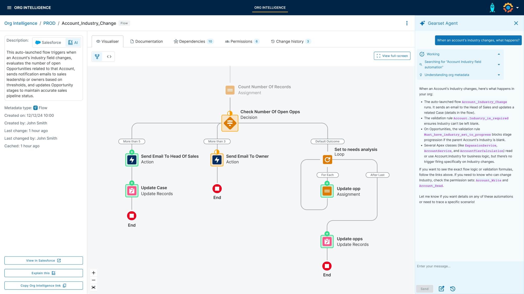 Making changes in Salesforce should start with confidence — not the risky guesswork that leads to costly rework. Org Intelligence gives you clarity across even the most complex orgs, with real-time visibility into your metadata, including configurations, code, automation logic, and page layouts. With a complete understanding of your Salesforce environment, you can design smarter and build right the first time.